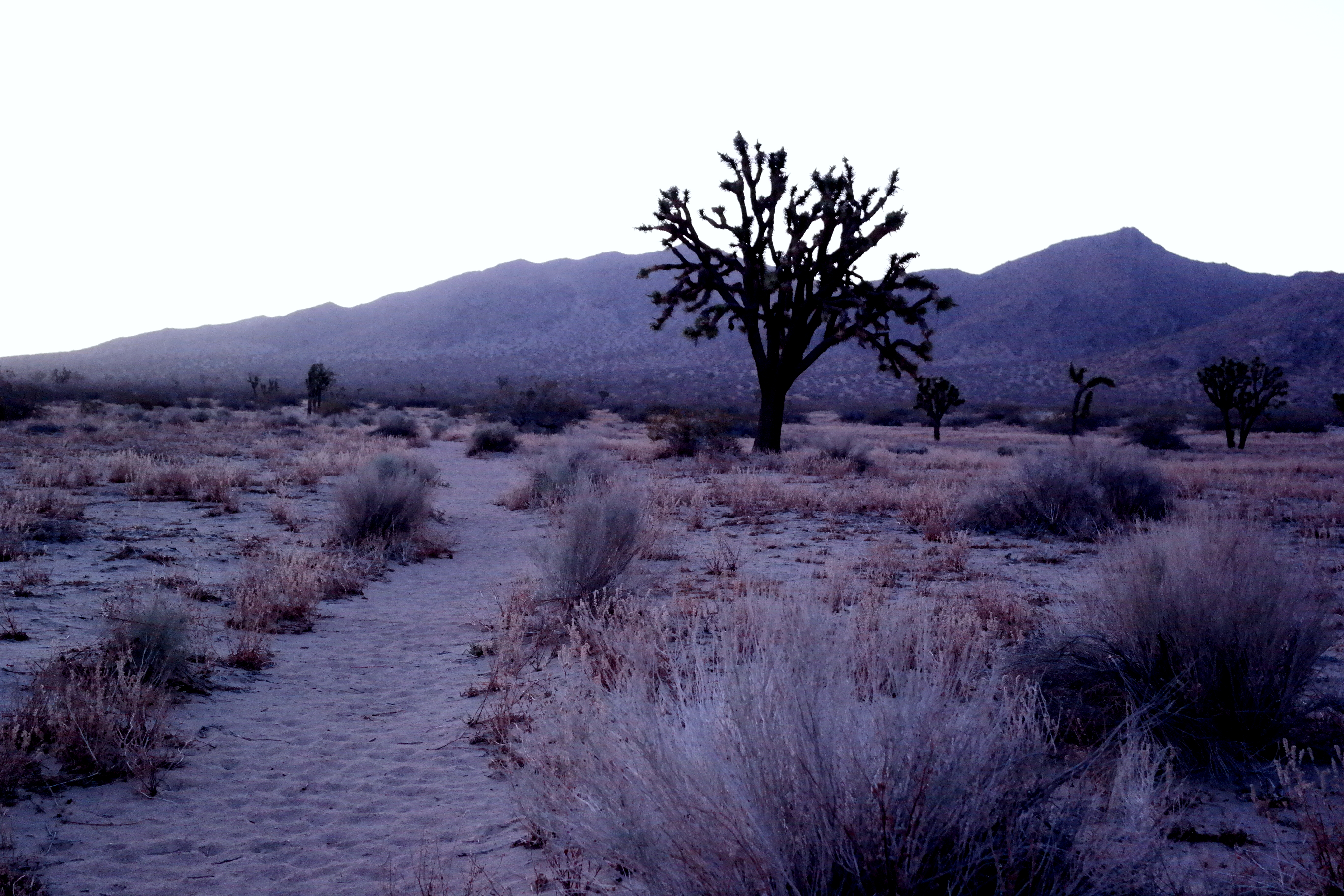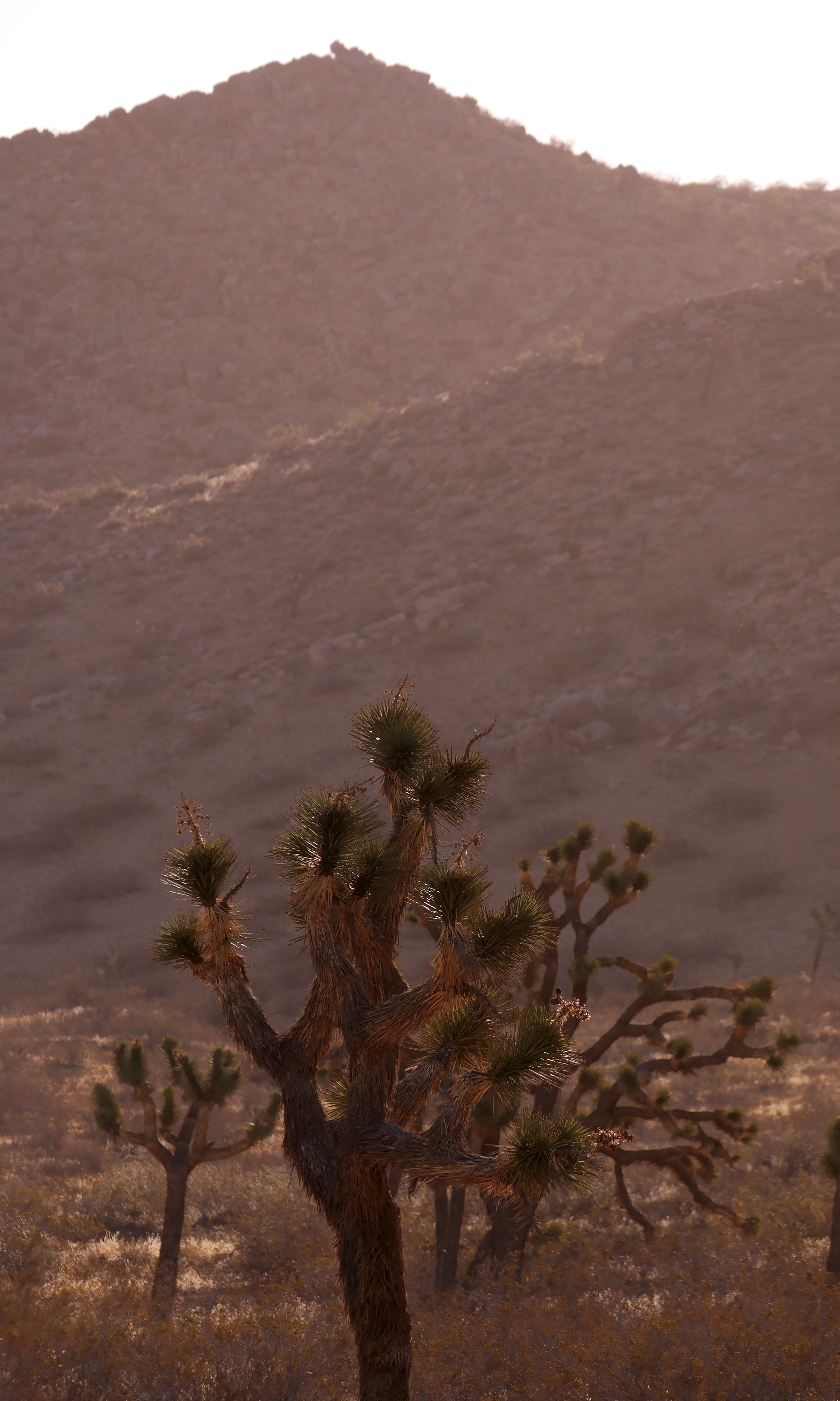 This once was known as Joshua Tree California State Park, but in the sixties the state decided to change the name so as not to confuse it with the popular, and maybe more scenic, Joshua Tree National Park. Both places contain “groves” of Joshua Trees, but Saddleback Butte is significantly smaller in size and scope of protection. Both parks are located in the Mojave desert, its just that Saddleback lies in the high desert where the weather allows for more of a savannah atmosphere, hence the display of wildflowers. I had to consider the worthwhile nature of my hike since I missed the bloom, so I concluded a sunrise could be quite spectacular to photograph. In hindsight, I realize now just how tricky the light situation and the challenge it presents to capturing a good sunrise shot. For example, even in the picture below, I saw the mountains crisply with a haze blanketing the lower portions of the range, but I just couldn’t get that crispness of the mountain range that I saw. Worse yet was that post production tweaking didn’t significantly amplify the mountain range.